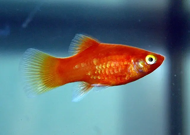 - Por qué es ideal: Si buscas un toque de color vibrante y un pez tranquilo, el Platy es tu elección. Disponibles en una infinidad de variedades (rojos, naranjas, azules, moteados…), son extremadamente pacíficos y resistentes. Pasan el día picoteando tranquilamente las superficies, y su carácter sociable los hace perfectos para cualquier acuario comunitario.